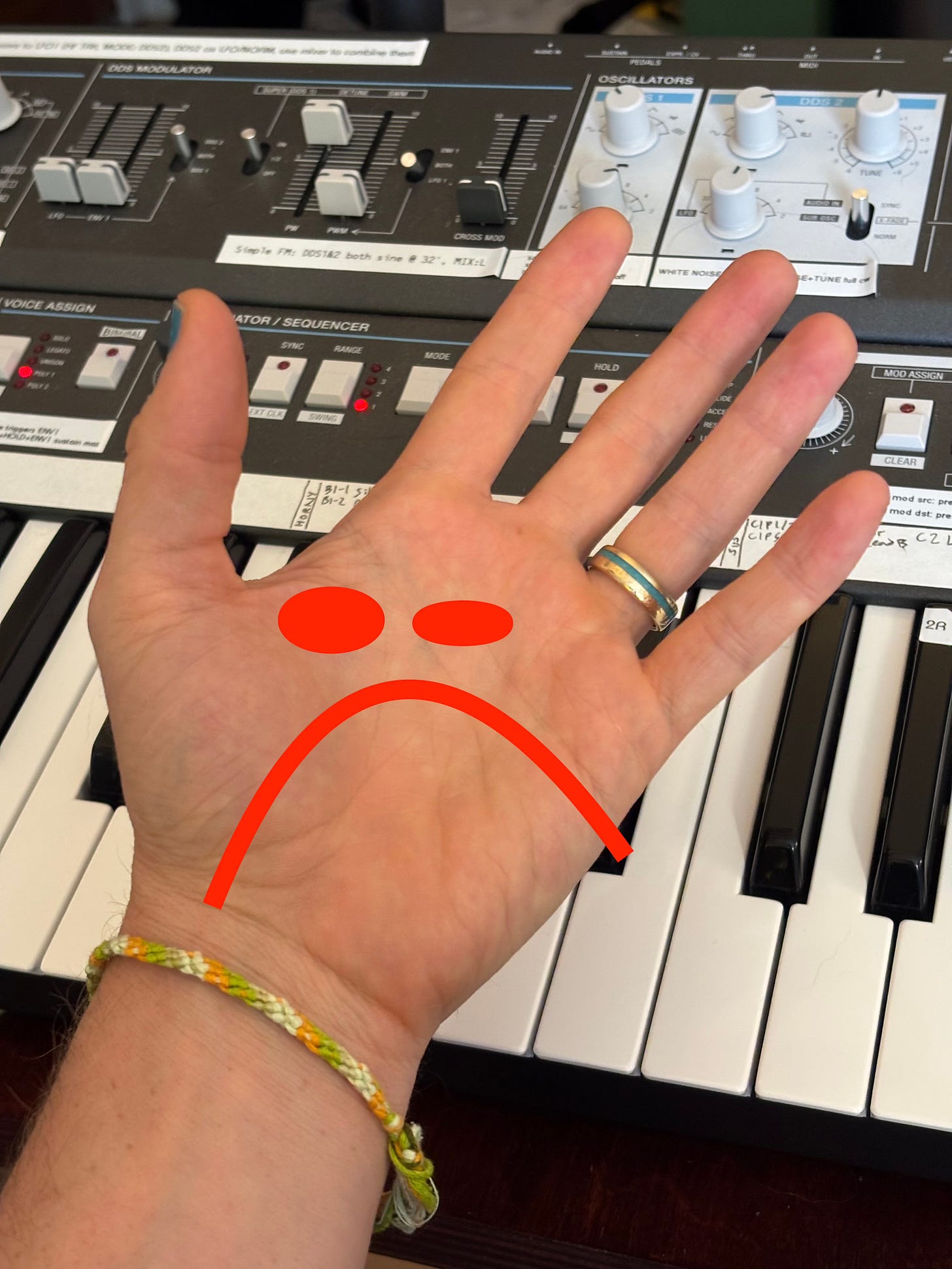 Synth timbres can be quite complex and evocative, just holding a single note can sound quite thickly rich, with subtle internal motion and vibrating harmonics. Sometimes I’ll just literally just find an interval, depress the “HOLD” button, and sit back and relax into the field of swanly waving electric grasses and native tule shoreplants that delve the blue-black muds of the shamanic pozas of the collective unconscious. Which is to say low notes get muddy and boglike real quick.